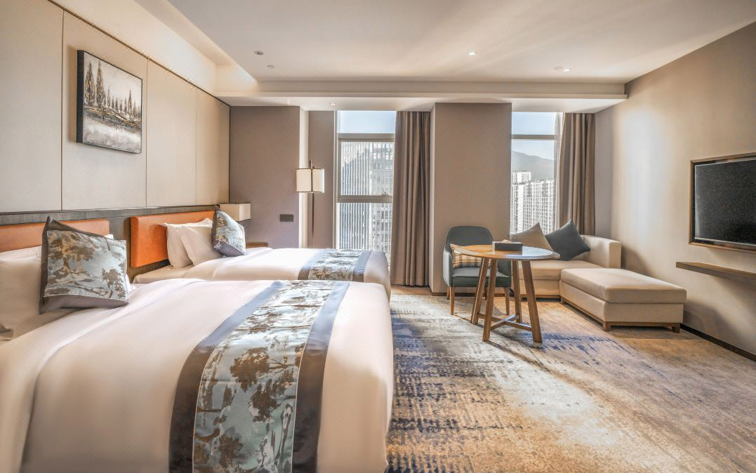 The hotel construction area is more than 50000 square meters, with an investment of 500 million yuan. The hotel has 220 guest rooms with an area of more than 50 square meters.